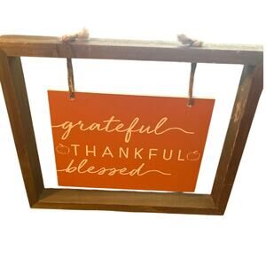 NWOT Wooden Frame with Hanging Sign Merry Everything/Grateful Thankful 8"x9 1/2"