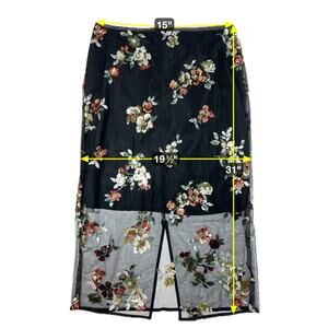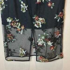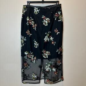 NWOT Worthington Black Multicolor Floral Sequin Semi Sheer Midi Skirt