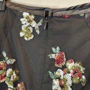 NWOT Worthington Black Multicolor Floral Sequin Semi Sheer Midi Skirt Womens 8