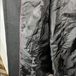 This is a great NWOT Worthington black and gold wool blend belted long women's trench coat! Pit to pit is 22 inches and shoulder to bottom hem is 46 inches. The front closure has to buttons to secure it.