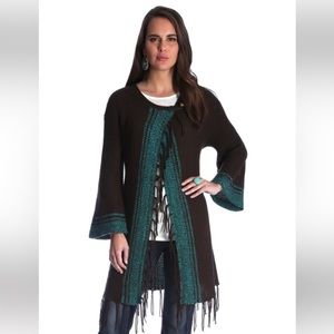 ~~ Super cute dark brown (almost black) and turquoise fringed sweater by Wrangler ~~