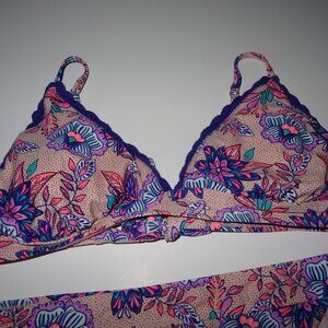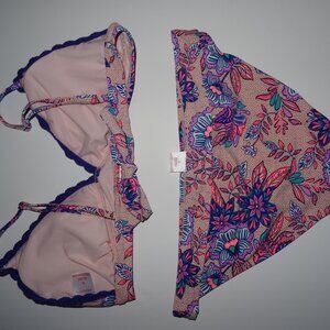 NWOT XHILARATION Floral Bikini Matching Set L/XL Crochet Purple