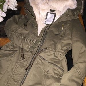 The most beautiful, heavy and warm (never worn) parka with removable faux fur lining. It’s sooo comfortable!! It has 6 pockets altogether, adjusts at the waist and you can remove pretty much everything. The hood Faux Fur detaches and the lining on the inside can as well shown in some pictures. It's very comfortable and warm perfect for winter! Sadly, dont have anywhere to wear it as I live in FL!