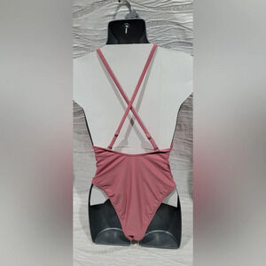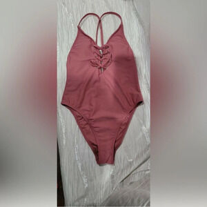 NWOT Xhilaration Red Rust Ribbed Sexy Lace Up One Piece Monokini Swim Suit Sz S