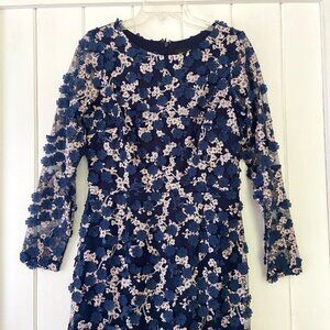 NWOT Xscape Blue Floral Applique Embroidered Formal Cocktail Dress Size 8