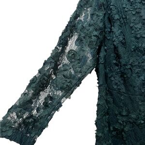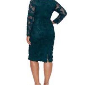 NWOT. Excellent condition. Elegant and timeless, this Xscape long sleeve lace sheath dress in hunter green (teal undertone) is perfect for weddings, cocktail parties, holiday gatherings, or any special occasion.
