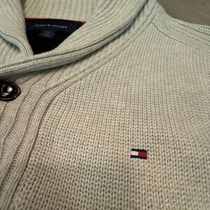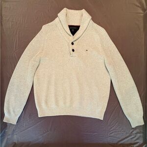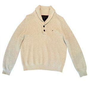 NWOT Y2K Tommy Hilfiger Men's Cream Quarter Button Up Cotton Sweater Large $145