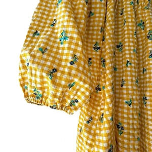 NWOT | YELLOW WHITE GINGHAM CHECK BOHO TOP RUCHED FLORAL PRINT | SIZE: MEDIUM