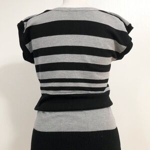 NWOT YESSICA Sleeveless Knit Top Small Black Gray Striped Viscose Blend Long