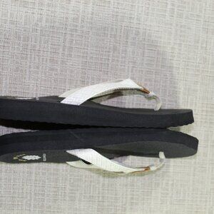 SUPER comfortable Mellow Mat cream colored thong sandals by Yellow Box. You won't find a more comfortable flip flop sandal. NEW - never worn; however, the "L's" on one shoe have come off.