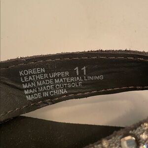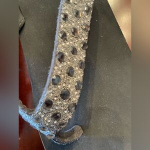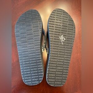 Elegant flip flop/sandals with a sleek black base. Adorned with shimmering silver details that sparkle in the light. Perfect for casual or dressy occasions. New without tag.