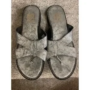 NWOT Yellow Box Silver Burke Wedge Thong Rhinestone Sandal, 9.5
