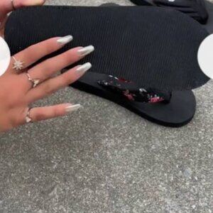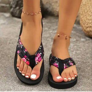 NWOT Youlisi Black Floral Flip Flop Sandals Size 9 (40)