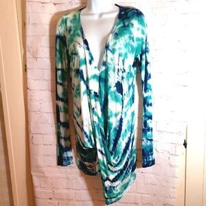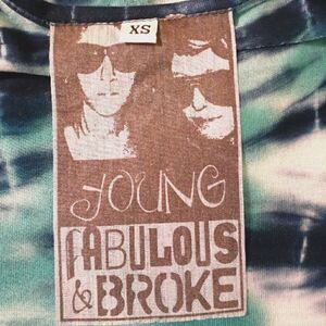 NWOT Young Fabulous & Broke Aqua/Wht Tie Dye Asymmetrical Hem Top XS/S Ret. $178