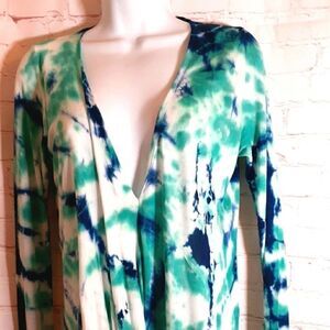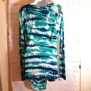Young Fabulous & Broke Aqua/White Tie Dye Asymmetrical Hem Long Sleeve Top