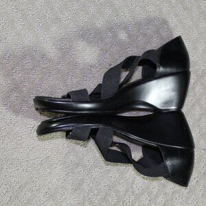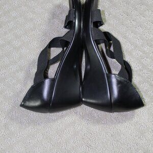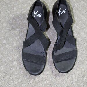 NWOT Yuu Size 9 Black Elastic Wedge Sandals