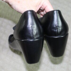 Great style and comfort! The elastic and low wedge heel provides the perfect combination of comfort and style. All black color provides a sophisticated look.