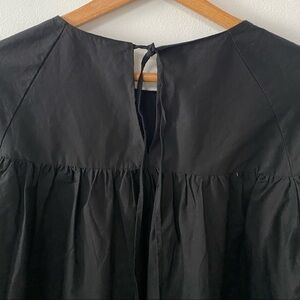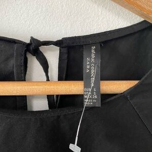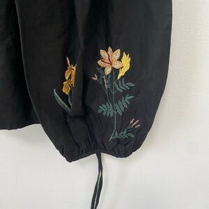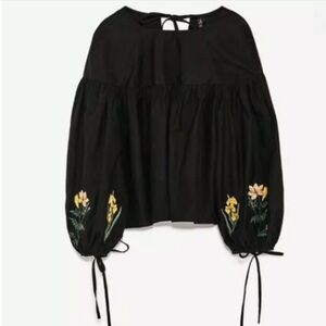NWOT ZARA BLACK POPLIN BOHO TOP WITH FLORAL EMBROIDERED BOHO FRILLED SLEEVES