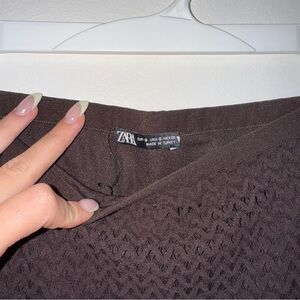 NWOT ZARA BROWN PATTERNED KNIT CROCHET BODYCON MINI SKIRT SIZE SMALL