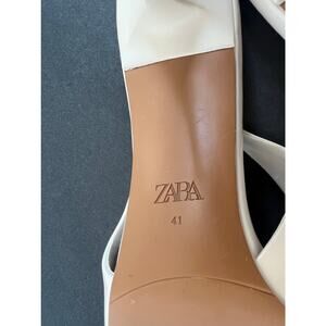 NWOT ZARA Cream Pointed Toe SlipOn Slingback Front Bow High Heel Pump Shoe Sz 10