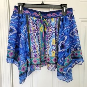 NWOT ZARA Geometric Mini Skirt Lined Asymmetric Hem Purple Blue Flowy Small