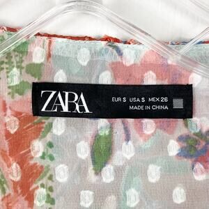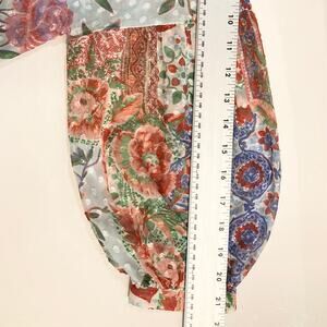 NWOT ZARA Top S Patchwork Jacquard Floral Print Chiffon Ruffle V Balloon-Long-Sl