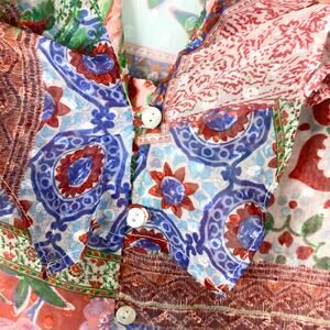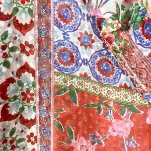 NEW without tag.Contrast Patchwork Floral Jacquard Dots Print.Chiffon.Ruffle V-Neck.