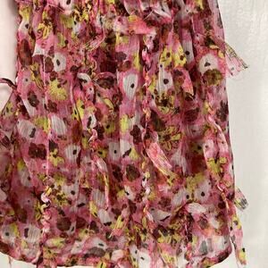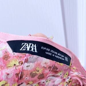 NWOT ZARA Top XS Pink Sheer Chiffon Ruffle Peplum Elastic Waist V Neck 4 Button
