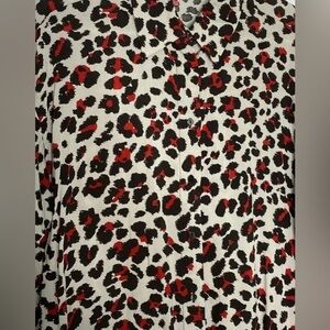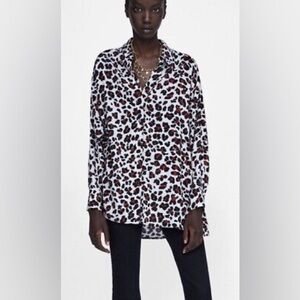 NWOT ZARA Women’s Gray Red Leopard Animal Print Relaxed Shirt Tunic XS X-Small
