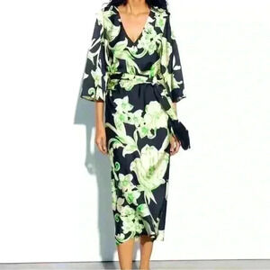 NWOT ZARA Women’s V neck cut Dress Attached belt Loose sleeves - Size M. Tags removed but never worn. Stunning dress!
