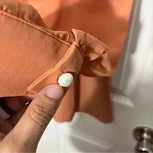 Brand new top by Zenana with peekaboo sleeves. Has pearl buttons as shown in photos. One of the buttons has a small scratch on it, also has a very small white stain which is disclosed in the photos. Lightweight. Key whole closure in the back. 100% polyester.