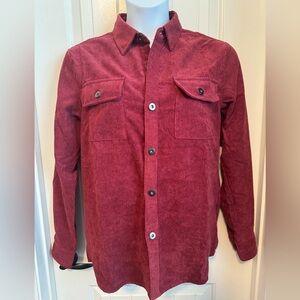 NWOT ZOLUCKY Corduroy Long Sleeve Button Down Shacket in Wine, Size Medium