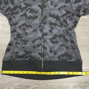 NWOT ZYIA Active Charcoal Camo Pivot Hoodie in size S. Excellent new condition. Slimming design, light texture, two front pockets, full zipper front closure, thumbholes, sweat wicking breathable fabric, ribbed hem and cuffs. Please see photos for approximate measurements and details. Item may show difference in color based upon photography and perception. Photos are part of the description, as everyone’s level of condition may vary. From smoke free and pet free home. All packages are shipped the same or next business day.