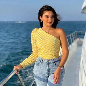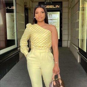 NWOT Zara Asymmetric Venus Yellow Gingham One Shoulder Crop Top S