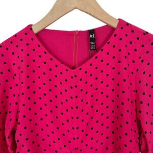 NWOT Zara Asymmetrical Hem Bright Pink Polka Dot Dress Size XS