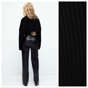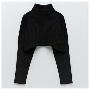 NWOT Zara Black Cropped Ribbed Sweater with High Collar. Size S.