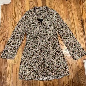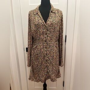 NWOT Zara Button Down Dress Size XL Floral Long Sleeves Rushed sides Collared