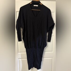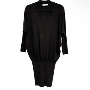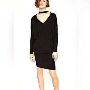 NWOT Zara Chic Black V-Neck Oversized Dolman Fitted Sexy Sweater Dress Small S