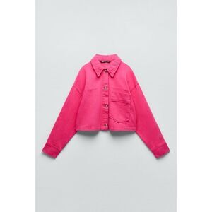 NWOT Zara Cropped Cotton Overshirt Oversized Denim Jacket in Fuchsia, Small
