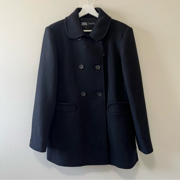NWOT Zara DOUBLE BREASTED WOOL BLEND COAT Size XL