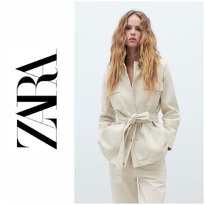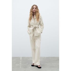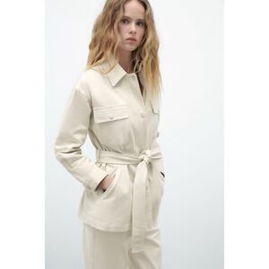 NWOT Zara Denim Jacket with Belt in Ice Color, Size Medium