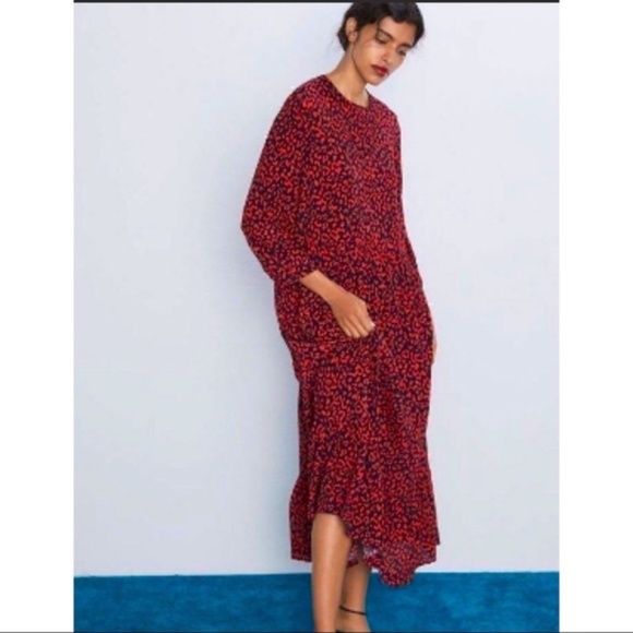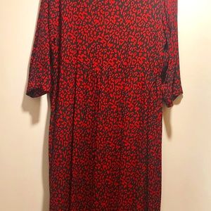 NWOT Zara Dress, Midi, red-black leopard print, size large