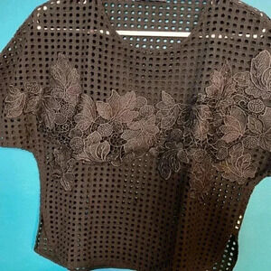 Zara W/B Collection Embroidered Eyelet Floral Top