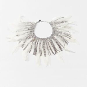 NWOT. Zara Feather Rhinestone Fringe Choker Necklace with lobster clasp fastening. 38% feather 25% glass 22% brass 5% polyester 5% steel 5% zinc. Metallic fringing necklace with rhinestone and feather appliqués. Ref. 4736/071. #5