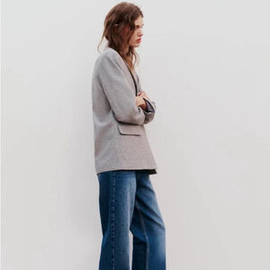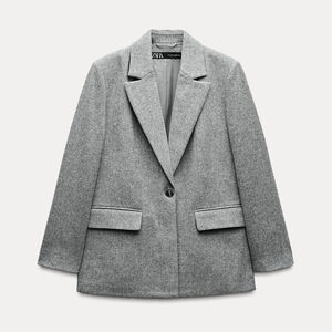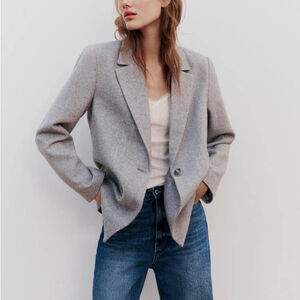 NWOT Zara HERRINGBONE WOOL BLEND STRAIGHT BLAZER Size S