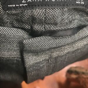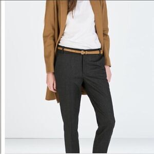 NWOT Zara herringbone trousers. Sz small. Cute with heels or chucks. Approximate measurements waist 15 inseam 29 rise 9. Back pockets still stitched shut. No material/ care tag which is what I’m calling a defect.