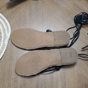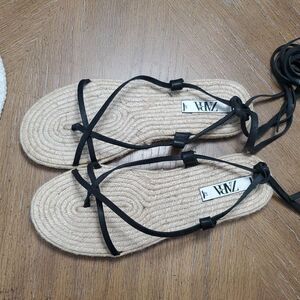 NWOT Zara Lace Up Tied Leather Jute Leather Black Sandals Size 41, Perfect condition