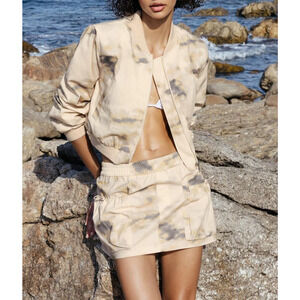 NWOT Zara Matching Set; Mini Skirt & Bomber Jacket Beige/Gray Top XL/Bottoms XXL