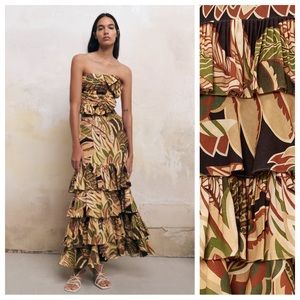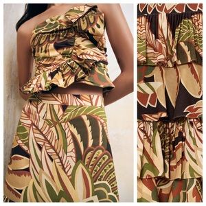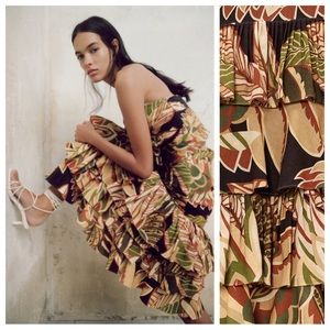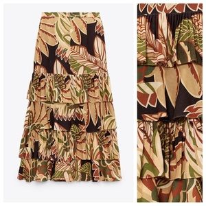 NWOT. Zara Multicolored Linen Blend Long High-Waisted Skirt with self ruffle detail, back hidden in-seam zipper closure. Size M. Ref. 2400/144. Waist 15" flat, length 38". O