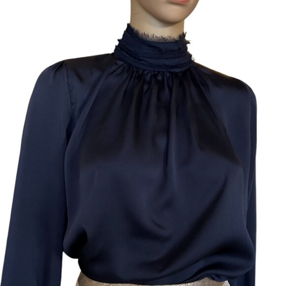 🛍️ NWOT 🛍 Zara Navy Long Sleeve Holiday Party Christmas Blouse XS